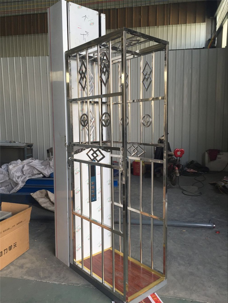 家用楼梯升降机是我公司科研人员借鉴液压手推车的原理自主研发的一种新型替代电梯的小型液压升降机,结构设计合理,是有导向机构、升降平台、液压油缸、液压泵站、传动链条、家用楼梯升降机电气箱和升降轨道等部件组成。它利用墙角的剩余空间,贴墙安装,方便快捷,不占用房间的面积,代替电梯经济适用,适合于二、三层楼房。跃式楼房,阁楼,地下室等面积狭小的区域.节省楼梯的占地面积,增加房间空间,用电少,噪音小,是理想的替代楼梯新产品.220v电压输入36v低压输出,保证了用电的安全。可分层安装按钮,实现多点控制。有轨道、地坑式供客户选择,规格可根据现场实际情况灵活设计。 家用升降机经济型的小型电梯,客户的满意是我们的追求。特别适合房间面积小,无法安装楼梯的场所。固定式液压小型升降台,额定载重300kg,电源采用220v交流电(或24v直流电),具有稳定性能好,安全系数高,噪音低,占地空间小,设备高度低(离地只有80mm),行程达到3-9m。特别有利老年人、残障人上下楼货物搬运。欢迎中外客户前来订购。 【产品应用】 1.液压升降平台(简称平台)在出厂前已经过检验,各项技术指标均达到设计要求,使用时只需接通电源,液压、电器系统不需调整。 2.升降平台在使用前要认真检查液压、电器系统,无渗漏或裸露现象。 3.升降平台在升降前应保持空载状态,接通电源后,电源指示灯亮,打开总停按钮;按下电机启动按钮。 4.按上升(绿色)按钮,观察升降平台有无反应,使电机空运转3-5分钟,如不上升,电机反转,切断电源,交换一下电机的两个相线。 5.按上升按钮(绿色指示灯亮),平台开始升高,到达所需高度后,平台自动停止(绿灯熄灭),然后按下降按钮(黄色指示灯亮),平台开始下降,降至原始位置后,电磁阀自动断电(黄色灯熄灭)。 6.升降平台在上升或下降过程中,如果需要停止,按停止按钮即可(红色按钮)。 7.使用完闭后关掉电源。