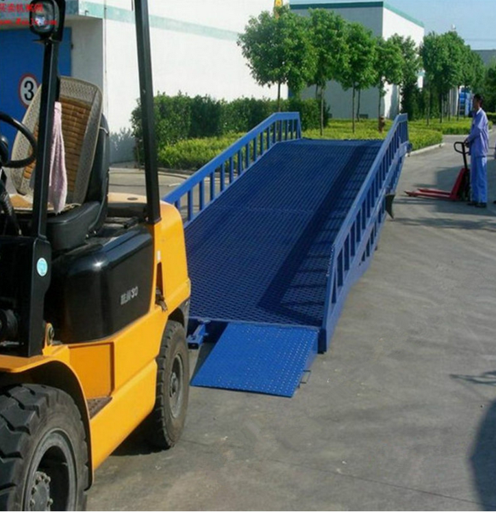 集装箱登车桥: 1.集装箱登车桥主体有7根竖梁焊接而成,无数根横梁,排布紧密,结构更结实。 2.台面底部铺设高强度钢板,上面更有8个厚的防滑菱形网格板,防止打滑。在雨雪天气叉车也可自由装卸货物。 3.集装箱登车桥配有安全支腿,使集装箱登车桥更牢固。 4.40公分的舌板搭在集装箱上,有链条固定,可使集装箱登车桥在作业状态下,牢牢与集装箱紧密结合,纹丝不动。 5.集装箱登车桥可在不同场所使用,配有实心轮胎,安全可靠。 售后服务:质保一年,超期只收成本费,终身跟踪服务,承诺出现质量问题专业技术人员及时到达现场。