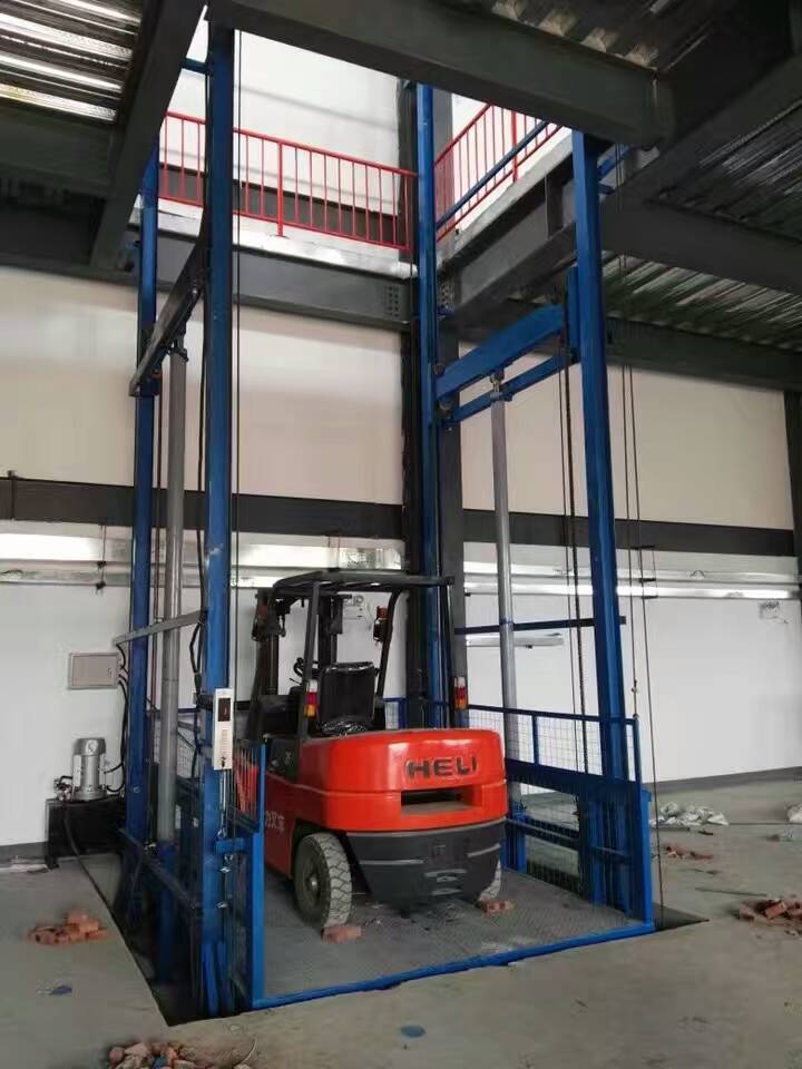 用途: 不能到达要求的场合等比较难解决的狭小空间,可以量身打造高效率的送货平台,产品液压系统设置防坠、上下层门互动连锁,各楼层和升降台工作台面均可设置操作按钮,实现多点控制。产品结构坚固,承载量大,升降平稳,安装维护简单方便,是经济实用的低楼层间替代电梯的理想货物输送设备。根据升降台的安装环境和使用要求,选择不同的可选配置,可取得更好的使用效果,本产品主要应用于化工、高温、高压、电厂、核工业基地等防爆企业。 功能: 最大承载10吨,实现多点控制,上下楼层互动联锁,达到安全使用;提升高度高,采用旁置油缸、或双测式油缸,运行平稳、无噪声、维修方便、使用寿命较长;停电手动下降、紧急停止按钮,方便、快捷、实用;地坑深度一般为15cm-30cm,顶层高度不受限制,可根据现场环境定做用;层门可贯通,厂房内外可相互戳开,方便、节省空间;特别适合2-5层钢结构厂房,内外部均可使用;泵站采用国内知名泵站,如果速度要求过高,采用进口定制泵站,达到理想的送货要求,密封件采用进口零部件,解决客户油压不稳定,零部件漏油问题。