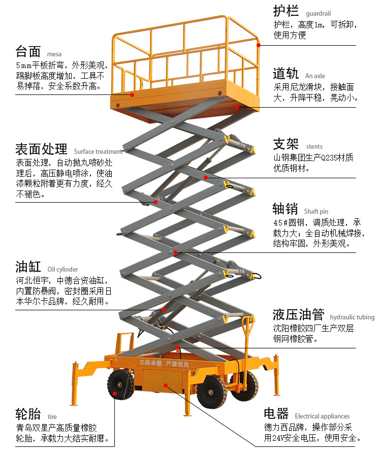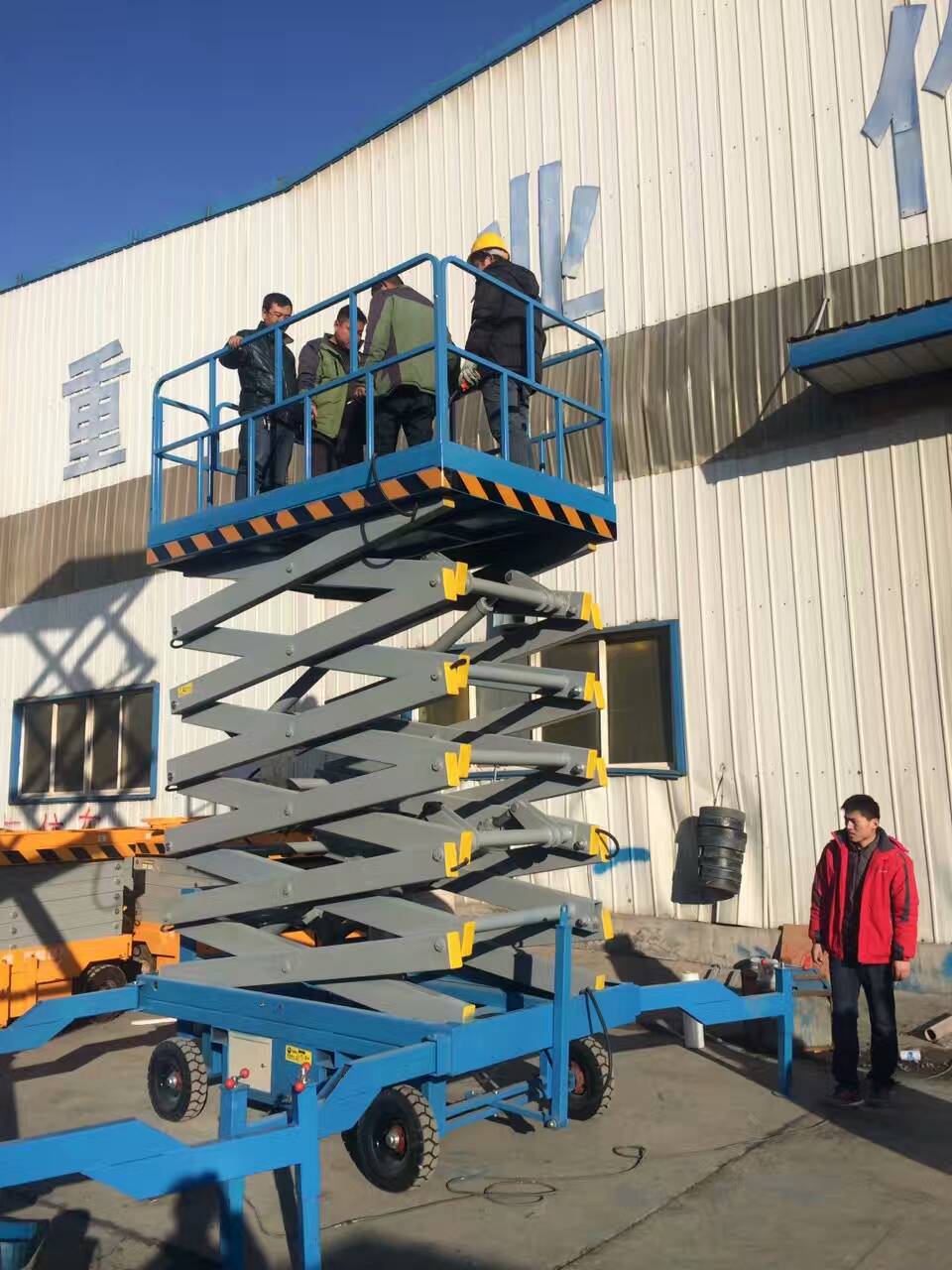 移动升降机根据需求可选为二相、三相、电瓶、柴油机为升降动力,特殊场所也可选用防爆电机、电器等。该升降机控制方式为电动上、下控制升降,手、电两用或遥控器控制,在停电时仍可使用。该系列升降机具有移动灵活,升降平稳,载重量大,操作方便等特点,移动升降机广泛用于工厂、粮库、机场、加油站、机关、码头、野外电力、路灯维护及建筑装修等各种行业。移动升降机可根据用户使用要求设计制造。