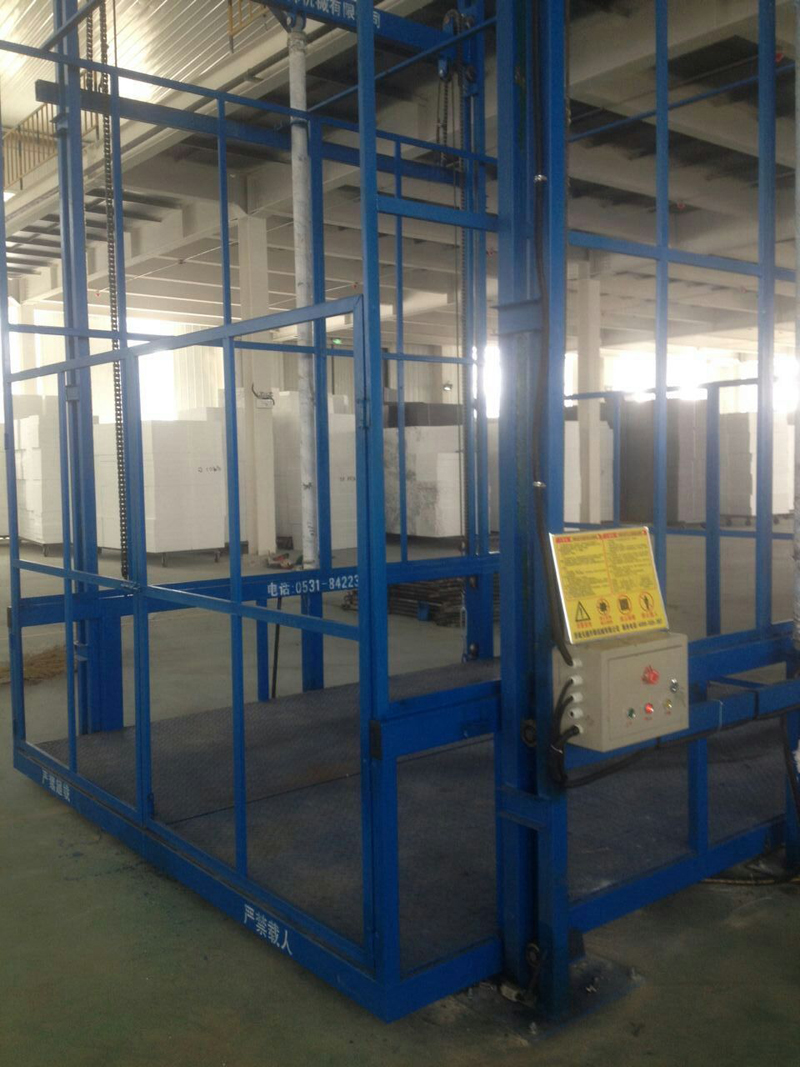 导轨式液压货梯是一种车间、仓库专业用于货物运输的升降设备,它的优势在于提升高度高,结构简单易操作。它的结构是采用旁置油缸,运行平稳,噪音低,维修方便,使用寿命较长,停电时,可使用手动应急下降,方便,快捷,实用。