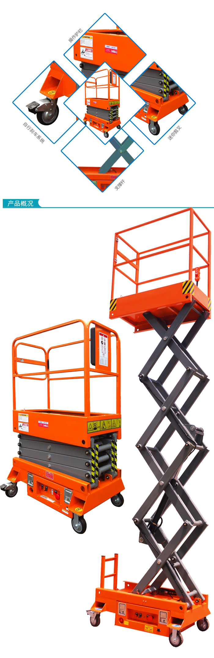 迷你剪叉式高空作业平台使许多困难危险的工作变得更加容易化,例如:室内外清洁(天花板,幕墙,玻璃窗,屋檐,雨蓬,烟囱等),广告牌的装置和维护,路灯和交通标志的装置和维护等。这种高空升降平台的特点是小巧灵活,方便快捷。可以用一部升降平台代替脚手架来达到您需要的高度,解决您的难题。同时,还可以节省您的费用和宝贵的时间。特别适合于机场候机楼、车站、码头、商场、体育场馆、小区物业、厂矿车间等较大范围的高空连续作业。